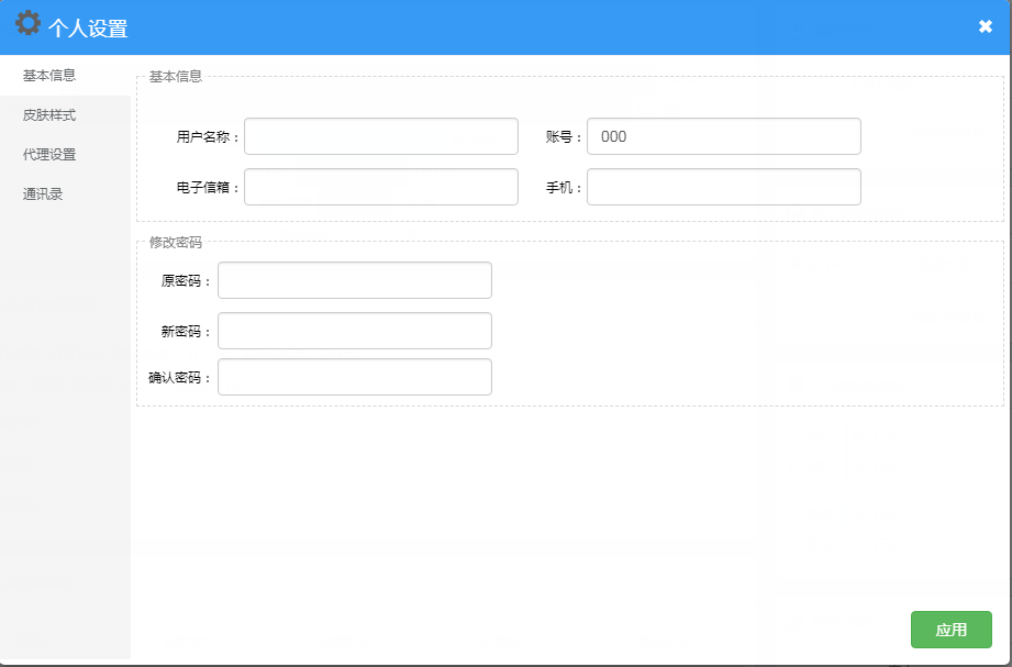 用户可以对个人信息进行修改,包括用户名称、手机号、邮箱、账户密码等